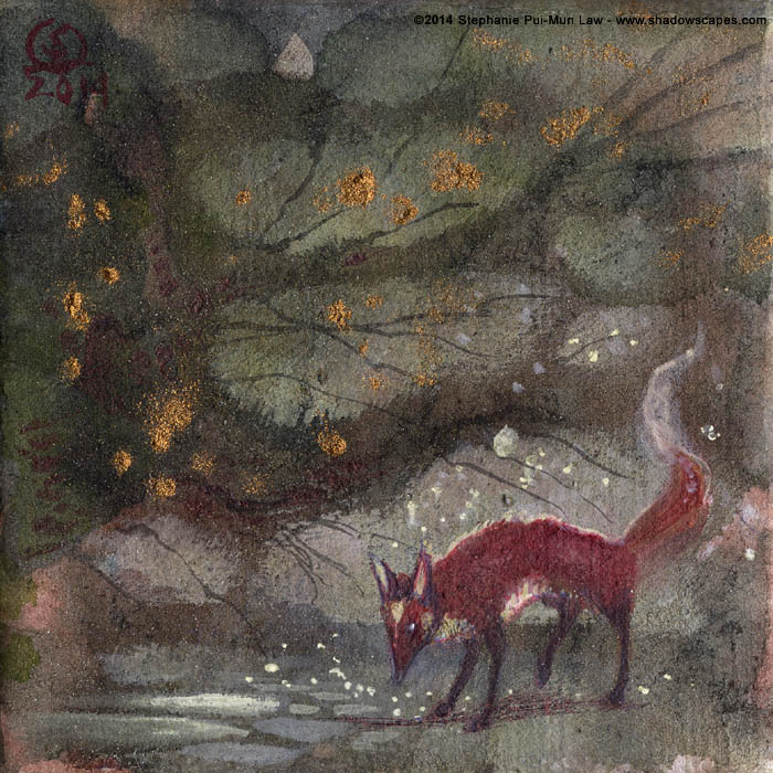 Size: 3 x 3 inchesMedium: Watercolors, inks, gold, metallics on canvas©2014, Stephanie Pui-Mun LawOriginal: Sold