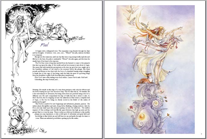 OUT OF PRINT Originally published by Shadowscapes Press, this book has been out of print for several years, but now a new softcover edition is available, published by Llewellyn Worldwide. 96 pages, full color, 8x11 inches. Featuring each of the 22 trump cards, along with text to accompany the images and ink illustrations created especially for this book. Followed by sketches of the development of each piece and insights into the symbols depicted, inspirations, and the lore behind them. An excellent companion to the deck kit published by Llewellyn! All copies are autographed. The Deck is available -here- Hardcover volume for the Minor Arcana is available -here- Please note: When selecting the "Book with Sketch" option, you will receive a hand drawn unique remarque sketch done by the artist on the inside front cover of the book. It will be drawn in ink. Please allow up to 3 extra weeks for shipment time for orders that contain a Remarque.